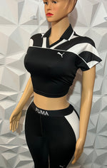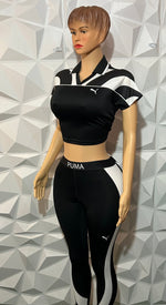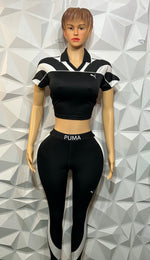"Get ready to turn heads with our Black & White Contrast Legging Set. Featuring a bold contrast design in both the leggings and crop top, this set is perfect for making a statement. Stand out from the crowd with this unique and stylish outfit. Prepare to be the envy of all your friends! (Sorry, not sorry)"