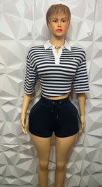 - Navy polo stripe boxy shorts set