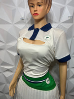 Get ready to hit the court in style with our 3 pcs green & cream set! This set includes a trendy tennis skirt in a playful combination of cream, navy, and green. Perfect for adding some flair to your game. (Caution: may cause envy among opponents.)